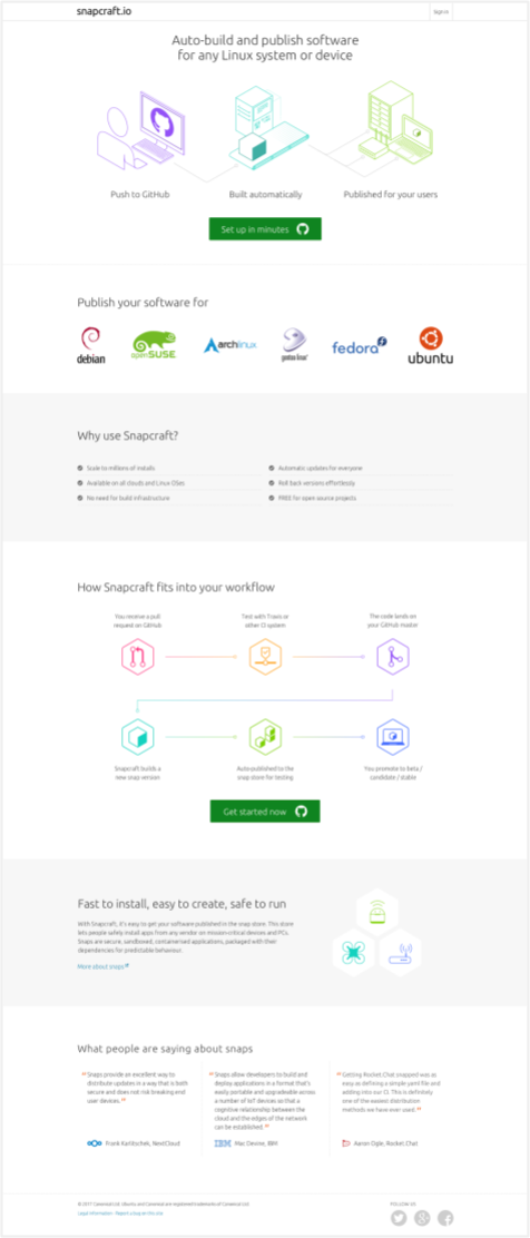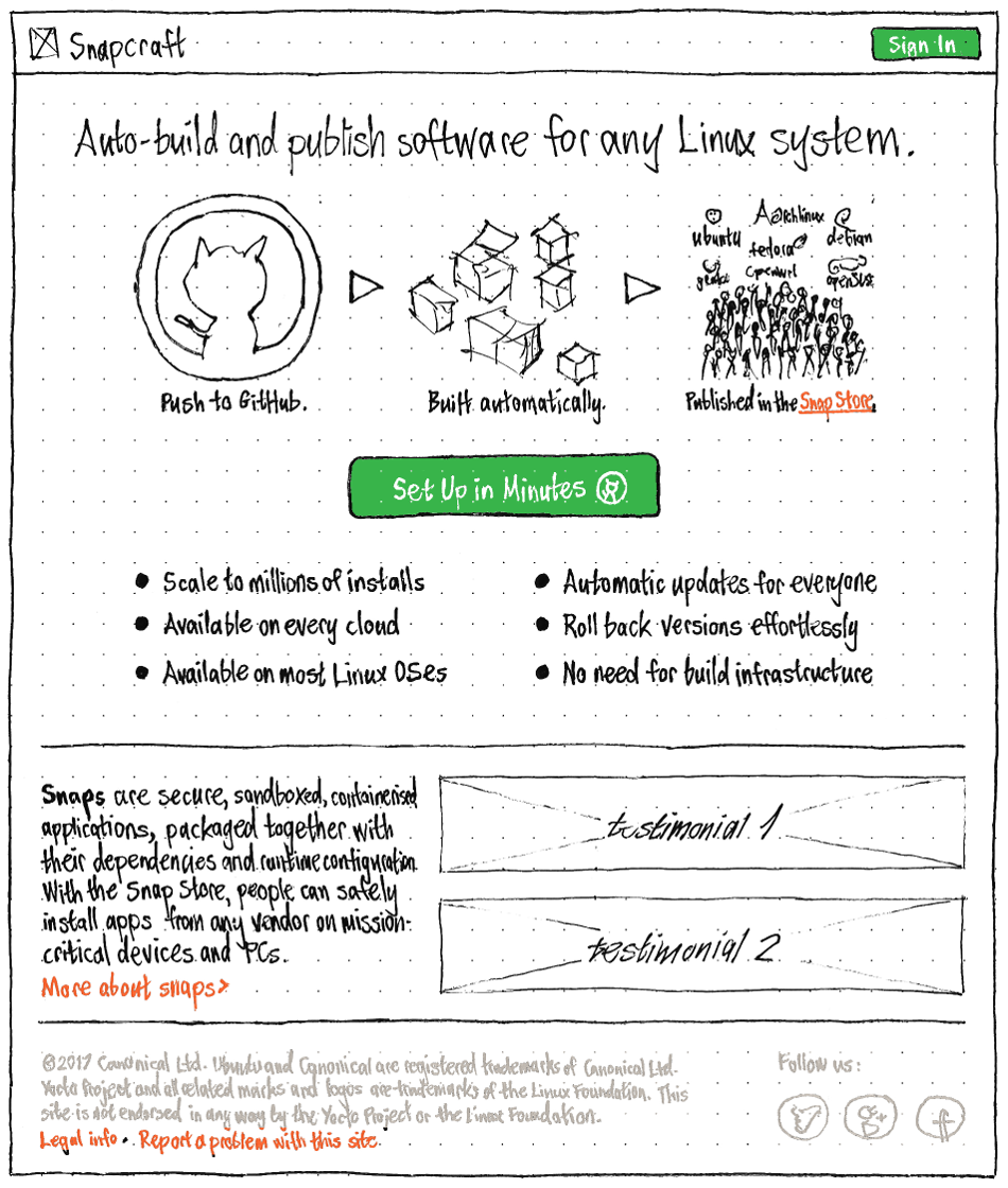 In January, I was presented with a design challenge. Many open-source software developers use GitHub. Let’s make it as easy as possible for them to build and release their code automatically, as a snap software package for Ubuntu and other Linux systems. The result is now available to the world: build.snapcraft.io.